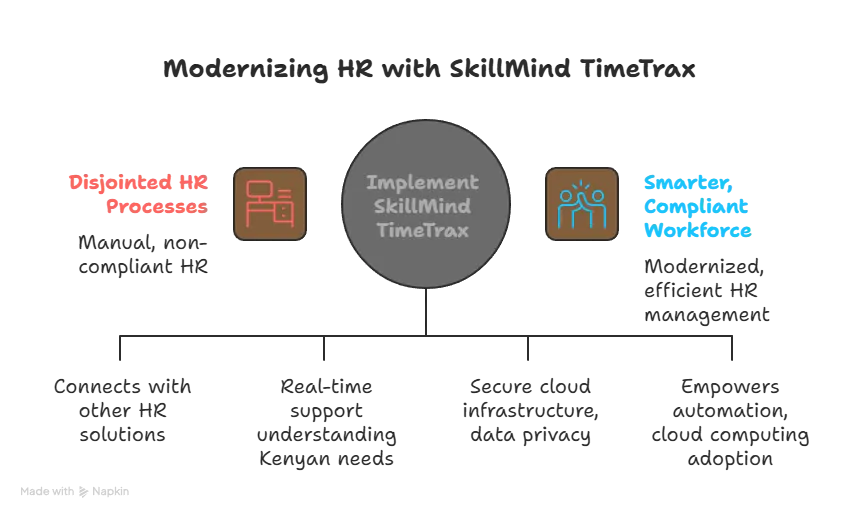 Tools like TimeTrax by SkillMind Software Ltd empower organizations to modernize how they track, pay and manage their workforce, all while staying compliant with Kenyan law.