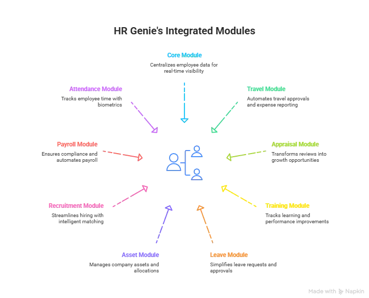 HR Genie simplifies complexity through an integrated suite of nine AI-powered HR modules, each built to tackle real workforce pain points: