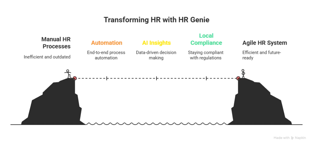 From payroll to performance, HR Genie delivers end-to-end automation, AI-driven insights and local compliance that keep your business efficient, competitive, and future-ready.
