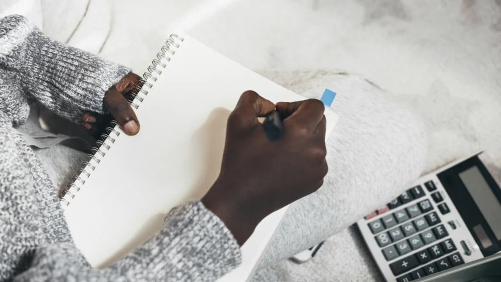 Image of a calculator on a desk with symbols representing taxes, healthcare, and pension — including a miniature house, a stethoscope, and a small Kenyan flag. Clean, modern office background, natural lighting."
