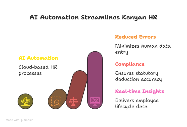 In 2025, efficiency, transparency and data accuracy are no longer luxuries; they are operational imperatives. That’s where Kenya’s first AI-powered HR & payroll software is making a difference. Artificial Intelligence (AI) and cloud-based automation are enabling HR teams to minimise repetitive work, ensure statutory compliance and deliver real-time insights across the employee lifecycle.