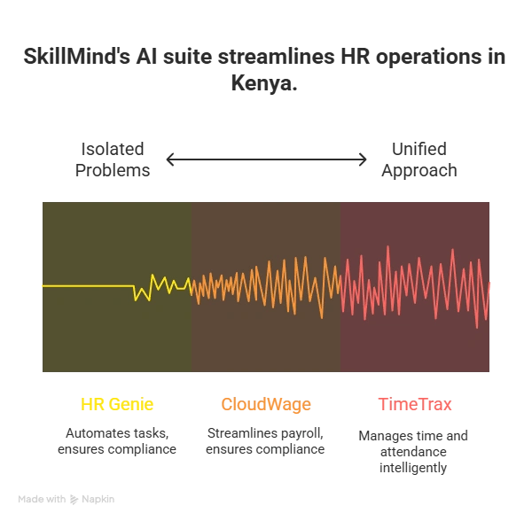 Leading this shift is SkillMind Software Ltd, a Kenyan innovator that has developed a unified HR Genie, CloudWage, and TimeTrax suite to help organisations move from manual HR management to intelligent, AI-driven efficiency. Together, these tools form a powerful ecosystem that automates everyday HR workflows while aligning with Kenyan legal frameworks and organisational realities.